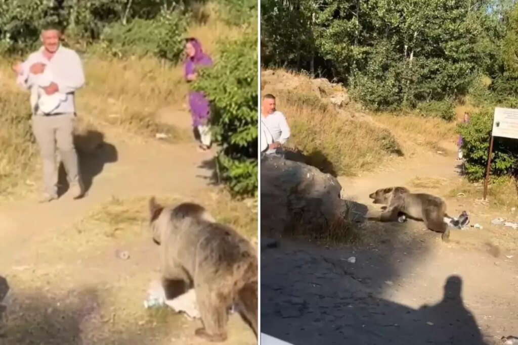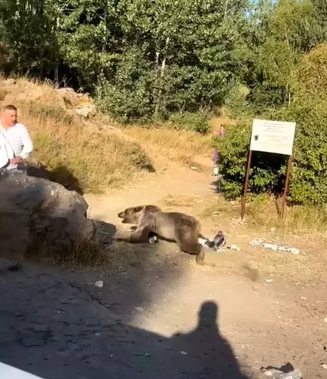 Bitlis’in Tatvan ilçesindeki Nemrut Krater Gölü’nde seyahate çıkan bir ailenin üzerine ayı saldırdı. Kucağında bebek bulunan vatandaşa yönelen hücum anları cep telefonu kamerasına yansıdı.