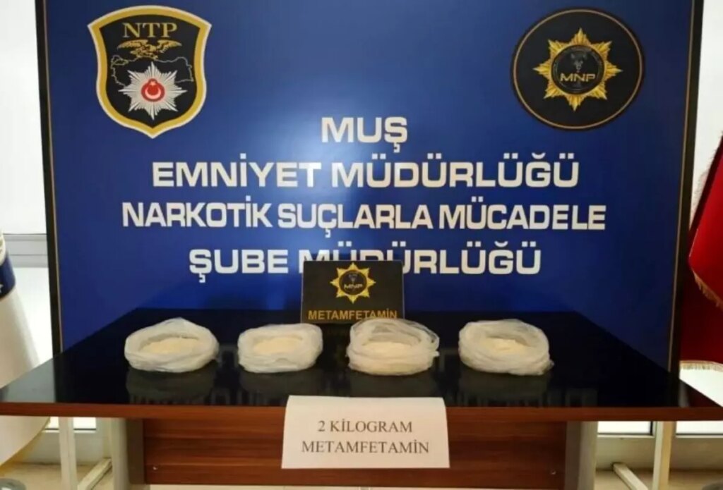 Muş İl Emniyet Müdürlüğü gruplarınca düzenlenen operasyonda 2 kilogramdan fazla metamfetamin ele geçirilirken, olayla ilgili 2 kuşkulu gözaltına alındı.