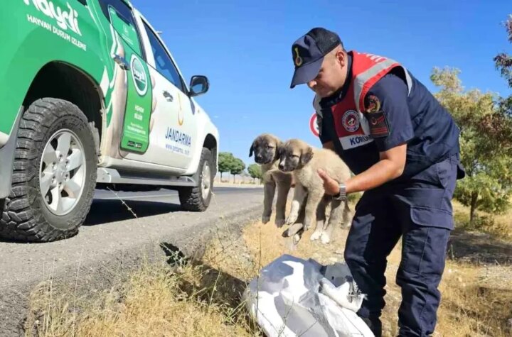 Muş'ta jandarma takımları, karayolu kenarında çuvalla bırakılan iki yavru köpeği kurtararak Muş Hayvan Barınağı'na...