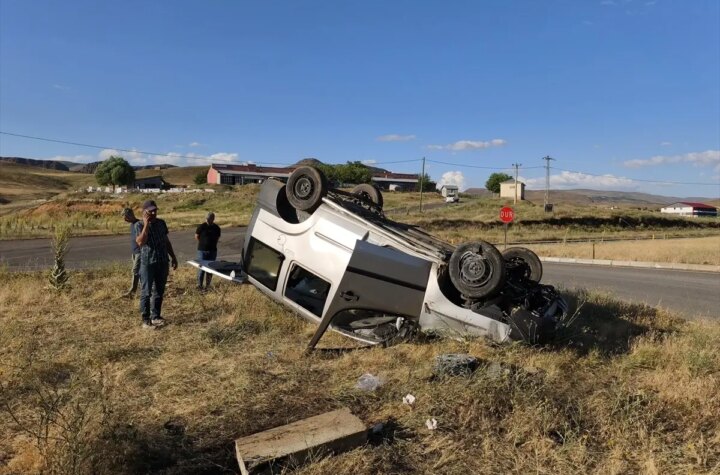 Bingöl'ün Solhan ilçesinde meydana gelen trafik kazasında hafif ticari aracın takla atması sonucu 3...