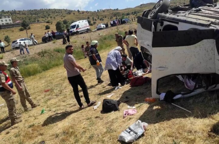 Bingöl'ün Genç ilçesinde cami açılışı sonrası dönüş yolunda denetimden çıkan minibüsün şarampole devrilmesi sonucu...