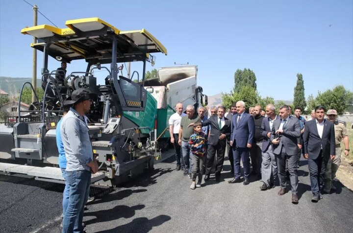 Muş'un Bulanık Kaymakamı Ömer Övünç Koşansu, parke taşı döşeme ve asfalt çalışmaları yürütülen köy...