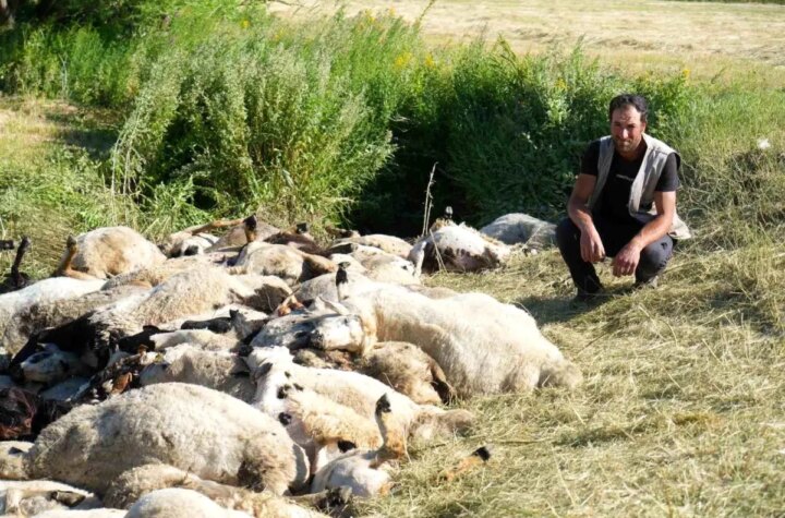 Muş'un Ziyaret köyünde gece saatlerinde meydana gelen olayda, otlatmak için meraya çıkarılan koyunlar bilinmeyen...